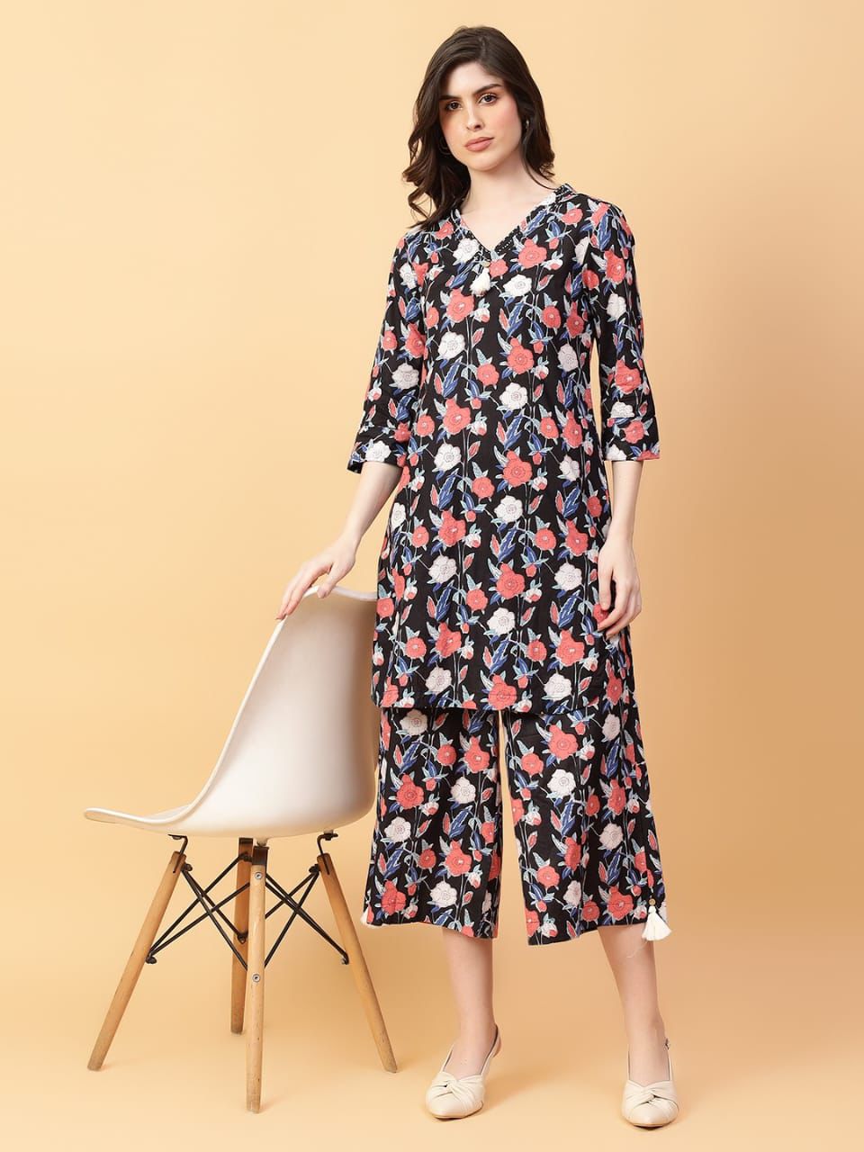 Upgrade your style with this elegant floral kurta co-ord set designed for modern ethnic fashion. The kurta features a refined neckline and a beautiful floral pattern that enhances the overall look. The relaxed sleeves and flattering silhouette make it comfortable for long hours of wear.